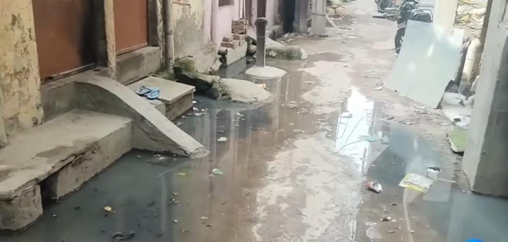 तस्वीरों में साफ देखा जा सकता है कि गलियों में जलभराव के बीच लोग गुजरने को मजबूर हैं, वहीं गंदगी और बदबू से बीमारी फैलने का खतरा भी बढ़ गया है।